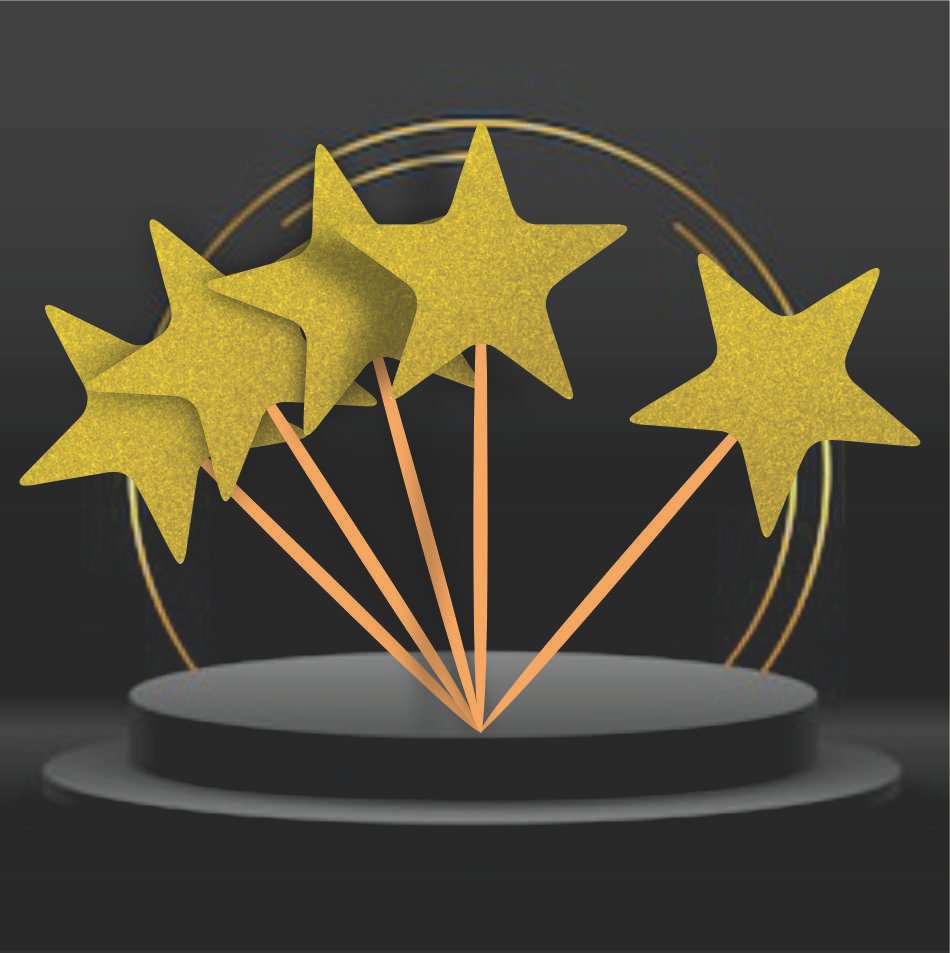 Glitter card Star cutout Cake toppers . Premium Quality. Imported Product. Best packaging.