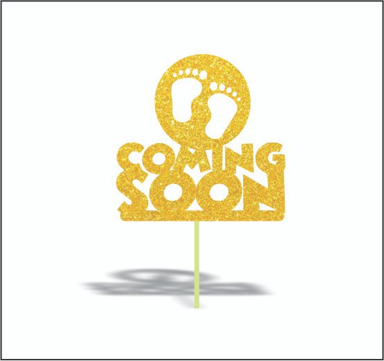Coming soon (Baby Shower)topper. GLD – bakecave